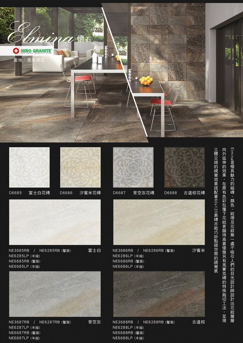 懷石 (三合一) 商品圖像 商品資訊 編號:NE36開頭 尺寸:30x60cm 編號:NE66開頭 尺寸:60x60cm 編號:NE62開頭 尺寸:60x120cm 編號:D66花磚 尺寸:60x60cm 商品Q&A 提問者稱呼 E-mail 手機 電話 留言內容 驗證碼