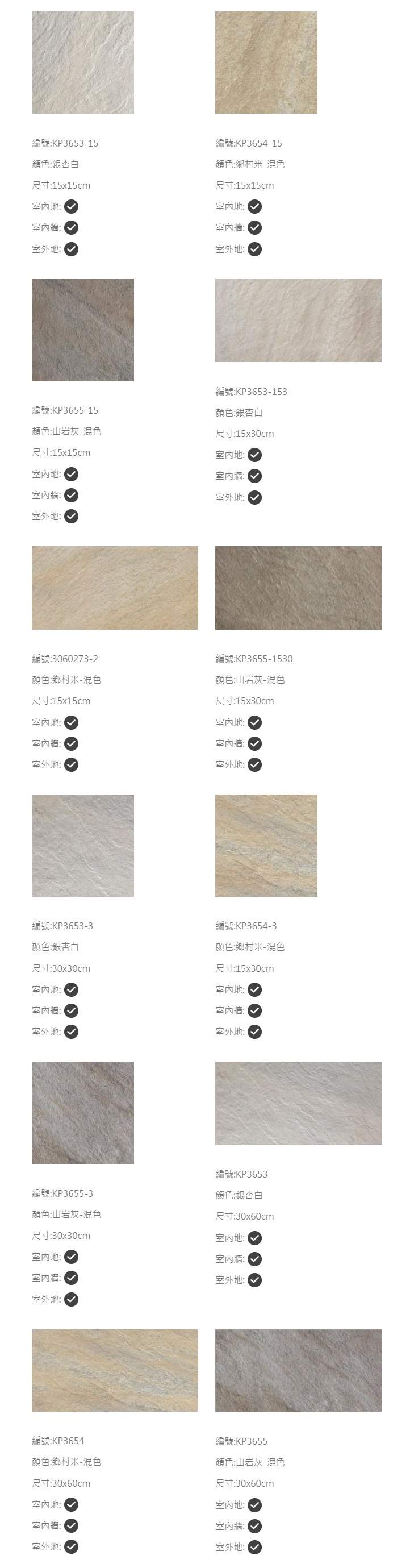 尺寸:15x15cm、15x30cm、30x30cm、30x60cm