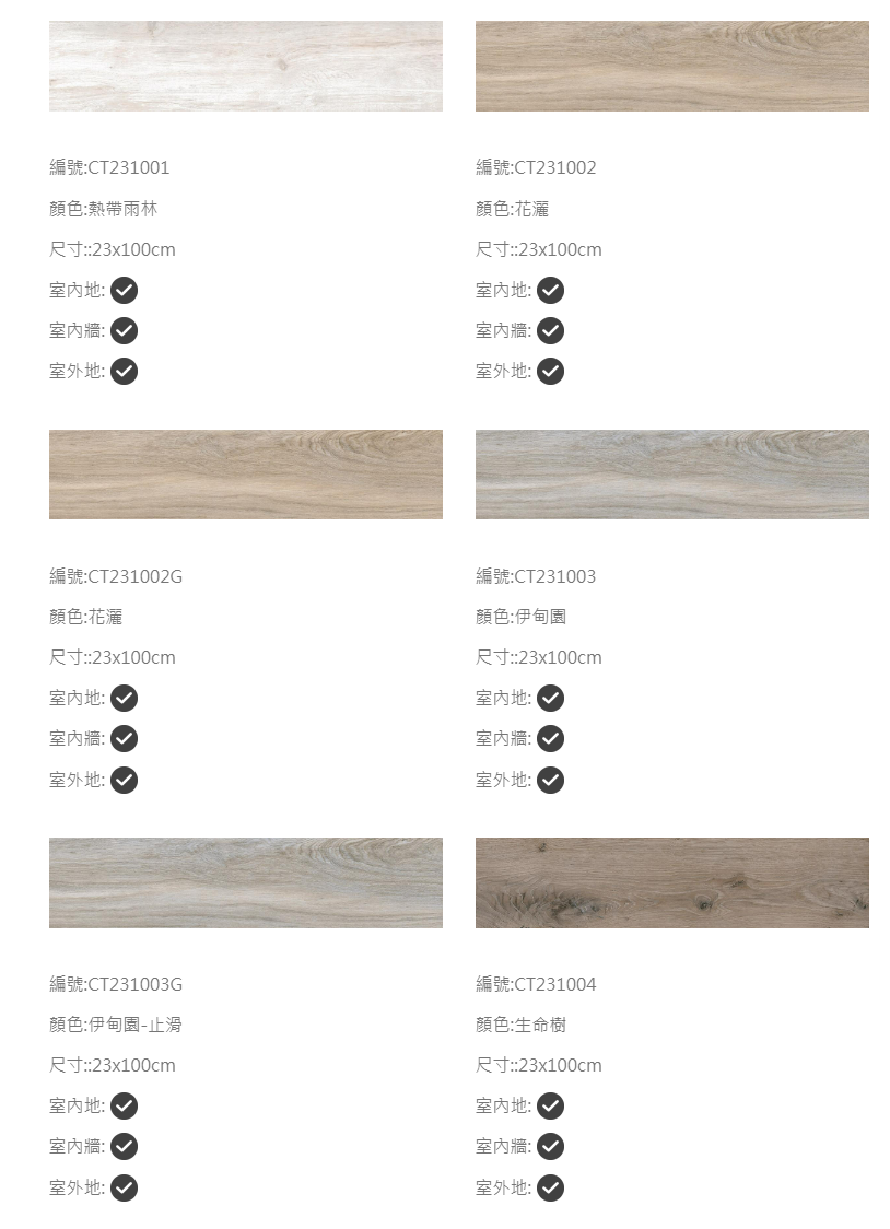 創世紀-止滑木紋磚 商品圖像 商品資訊 產地:義大利 尺寸:23x100cm Century 研發團隊聽見了大家對於美學的追求- 期待木紋磚能夠保有自然紋理及溫潤的質感。淡雅的風情、木紋的細膩與溫柔一直是你我期待的,簡單又帶有自然況味的英式田園空間氛圍,讓您體驗離塵不離宵的居住環境。 商品Q&A 提問者稱呼 E-mail 手機 電話 留言內容 驗證碼
